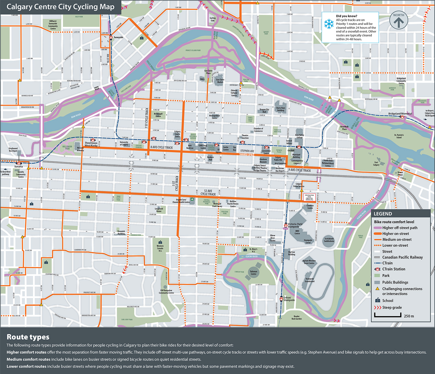Calgary features a variety of designated cycling spaces in addition to our extensive pathway system. Each space reflects a specific design for the location and existing traffic flows.