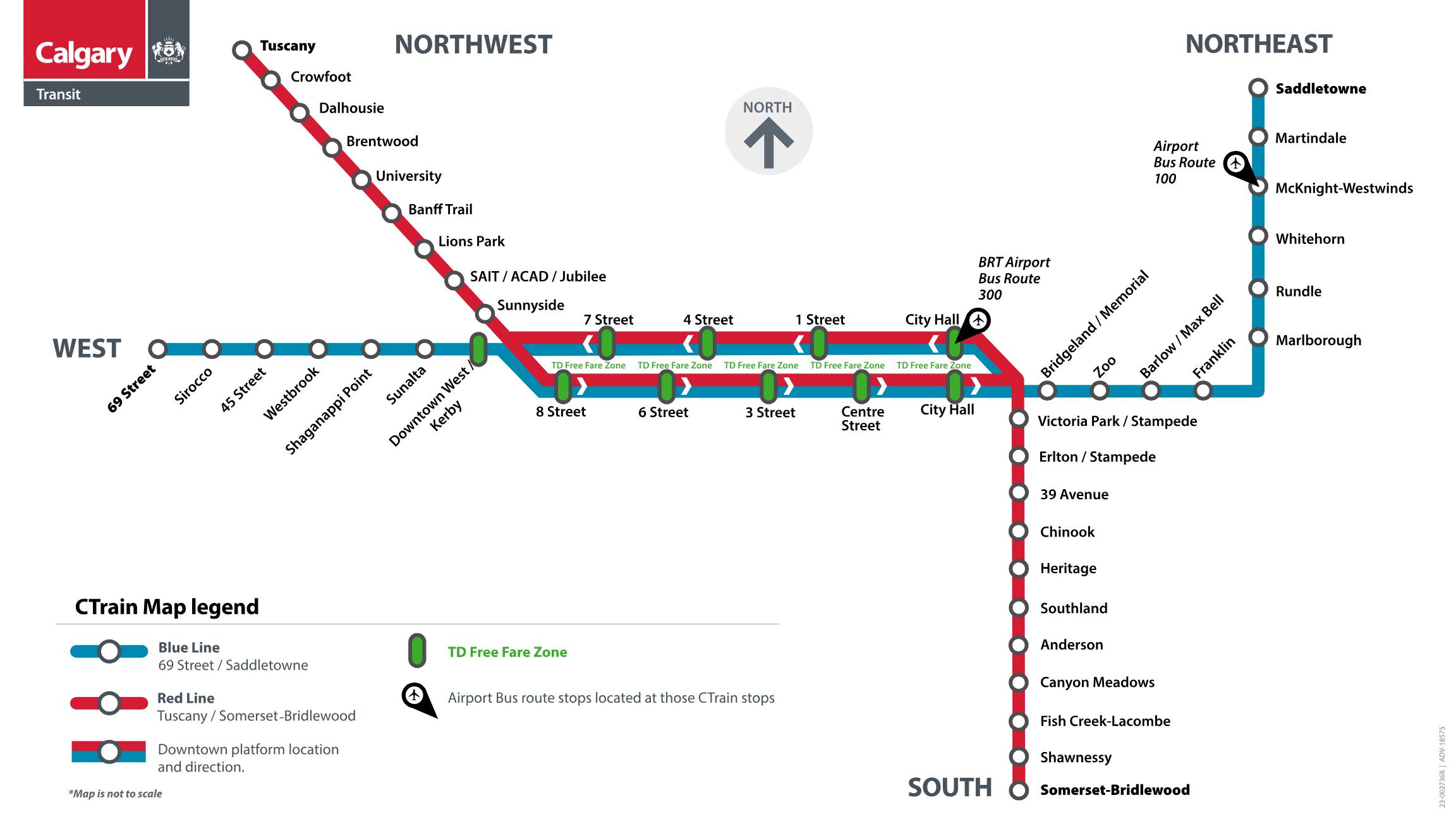 There are two CTrain lines that run through the centre of Calgary’s downtown core on Seventh Ave.